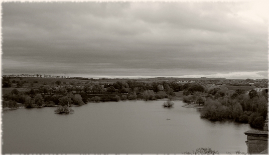 und Baumgruppen, unmittelbar vor uns aber ein kleiner, inselreicher
